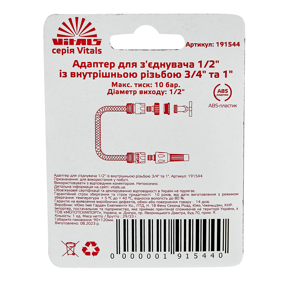 Адаптер для конектора 1/2" з внутрішнім різьбленням 3/4" і 1" Vitals