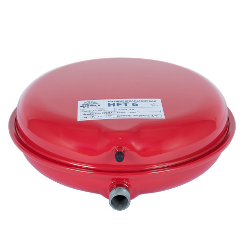 Бак HFT 6 компенсує зміни об’єму теплоносія, які виникають під час температурних коливань у закритій системі опалення. При нагріванні система виштовхує надлишок теплоносія в бак, де мембрана розтягується, стискаючи повітря. Під час охолодження, стиснуте повітря витискає теплоносій назад у систему, підтримуючи заданий тиск.
