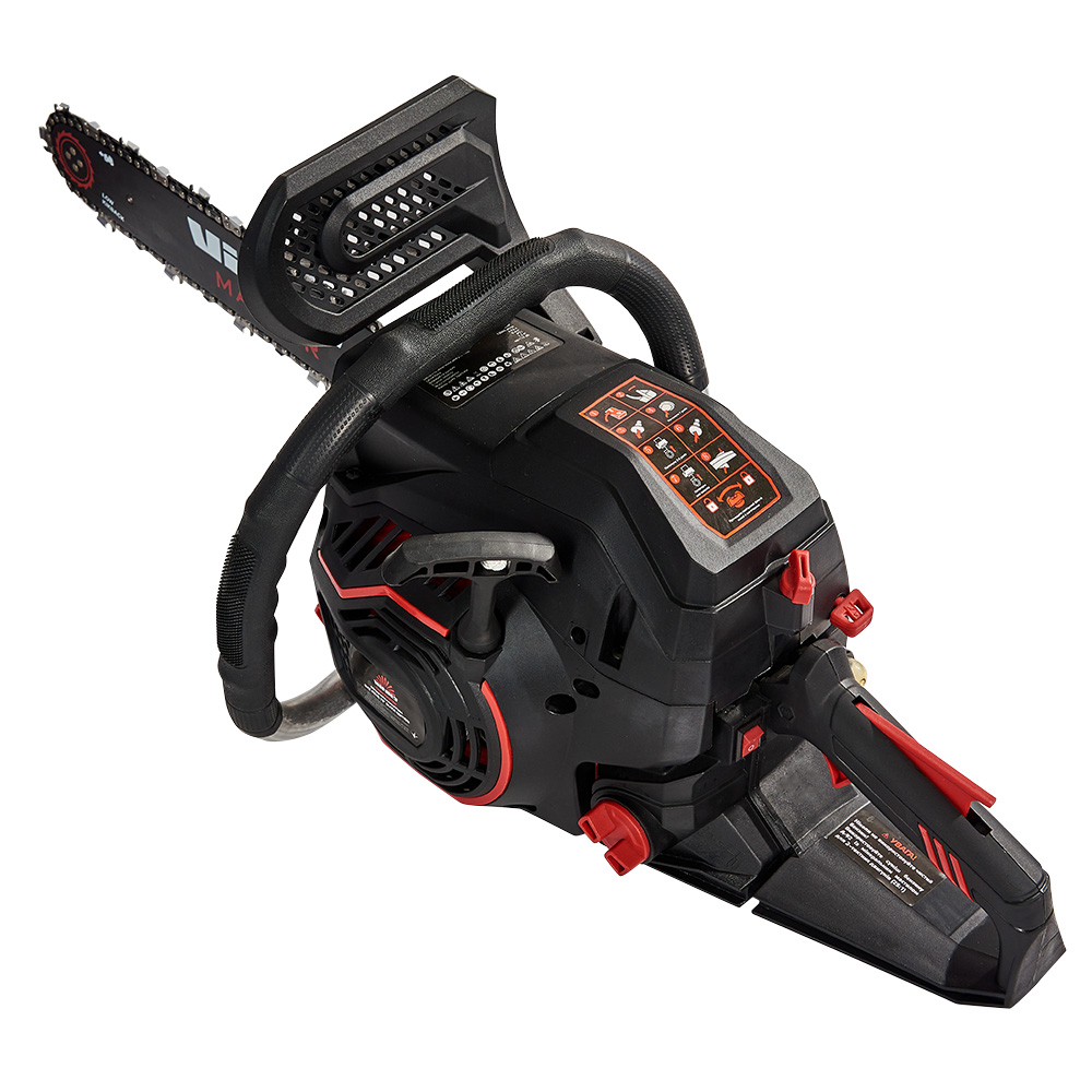 Особливості бензопилу включають міцний поліамідний корпус, кований колінчастий вал для тривалої роботи, хромовані стінки циліндра для підвищеної зносостійкості та система "Легкий старт". Карбюратор преміум-класу та паливопідкачуючий насос "праймер" сприяють економії палива та спрощують запуск інструменту.