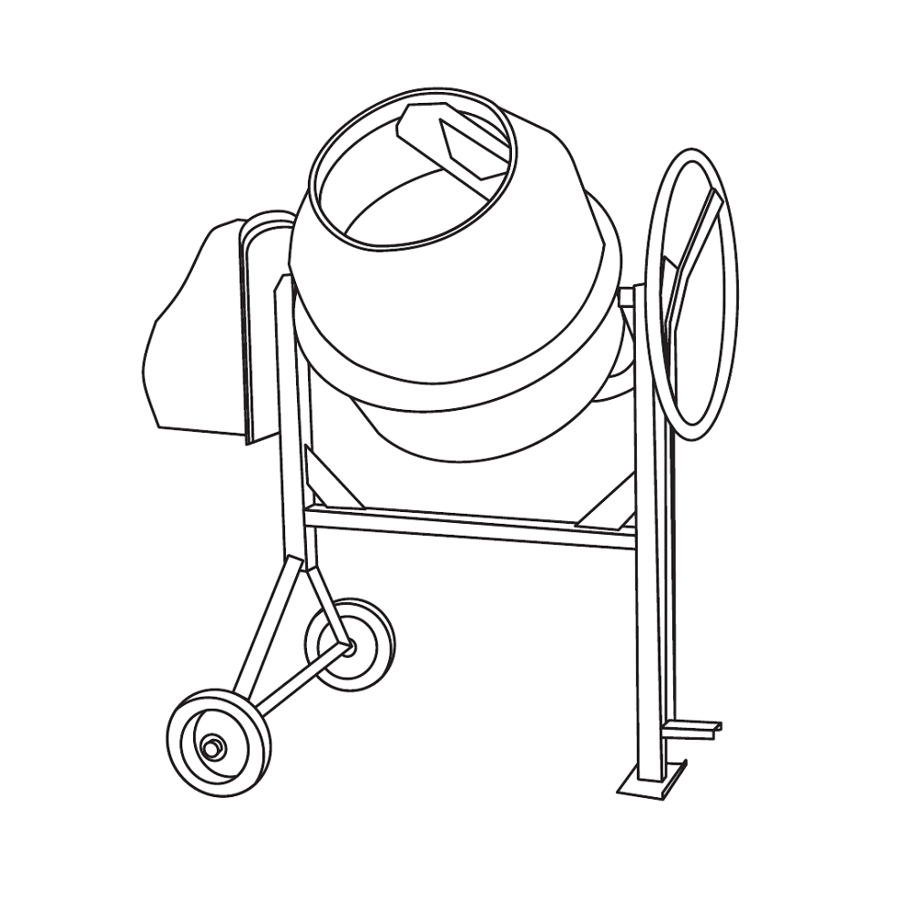 Конструкція бетонозмішувача продумана з урахуванням зручності експлуатації та довговічності. Міцний металевий барабан стійкий до механічних навантажень, а стабільна рама забезпечує надійну фіксацію обладнання під час роботи. Збалансована конструкція сприяє рівномірному обертанню барабана та зменшує вібрації.