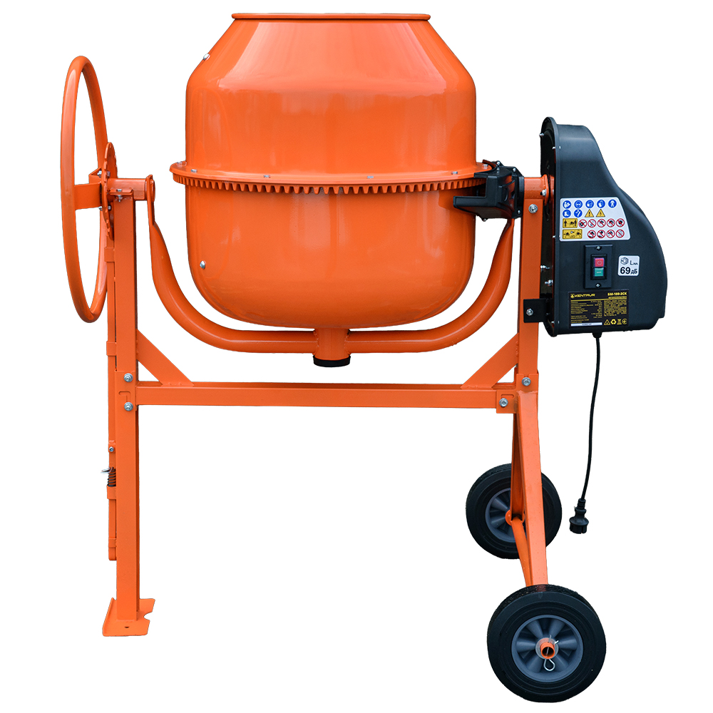 Посилені колеса: спеціально розроблені для забезпечення стійкості та легкої мобільності бетонозмішувача на будь-якій поверхні, включно з нерівною та сипучою основою.