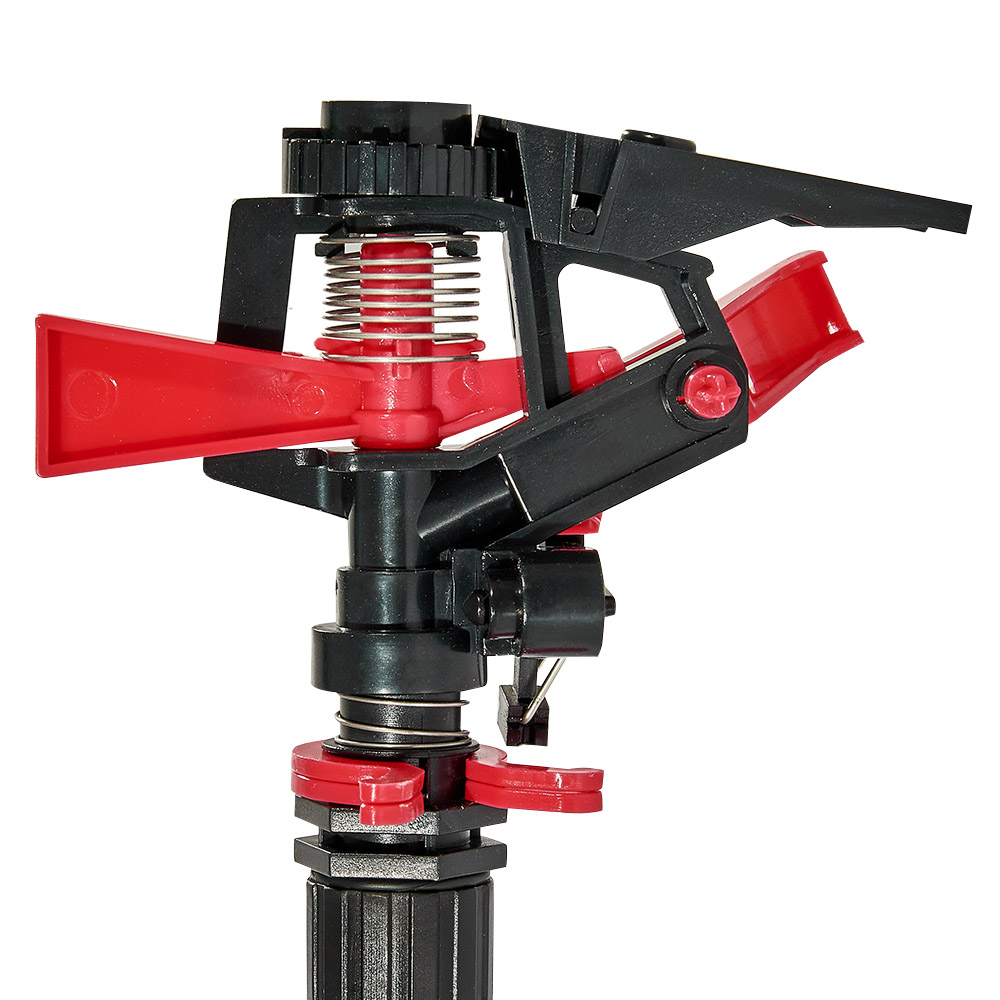 Зручна форма ніжки дозволяє легко фіксувати дощувач у ґрунті, а легка конструкція дозволяє легко переносити його з місця на місце або стаціонарно встановлювати на потрібній ділянці. Цей дощувач стане незамінним помічником у вашому саду чи городі, забезпечуючи потрібний рівень зволоженості для здоров'я та процвітання ваших рослин.