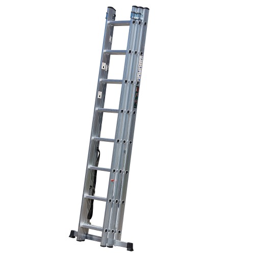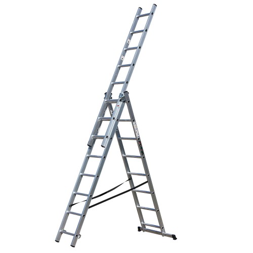 - Різноманітні варіанти робочої висоти завдяки конструкції, що дозволяє використовувати драбину в кількох положеннях.