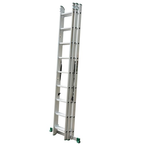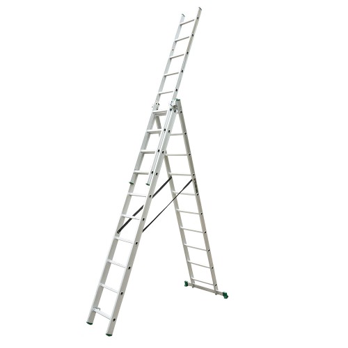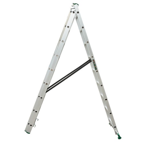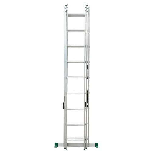 Драбина складається з 3 секцій по 10 ступенів у кожній, що дозволяє досягти максимальної розкладеної довжини 6,24 м. Це дає змогу виконувати різноманітні завдання на великих висотах, таких як фарбування стін, встановлення обладнання або робота на даху. Завдяки високоякісному профілю товщиною 1–1,2 мм, драбина забезпечує максимальну надійність і витримує навантаження до 150 кг.