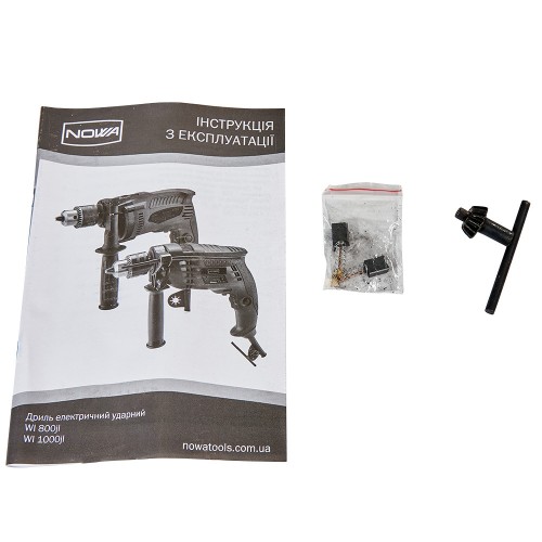 NOWA WI 1000jl оснащений металевим ключовим патроном діаметром 13 мм, який забезпечує надійне кріплення свердел та інших насадок. Це гарантує безпеку та точність під час роботи.