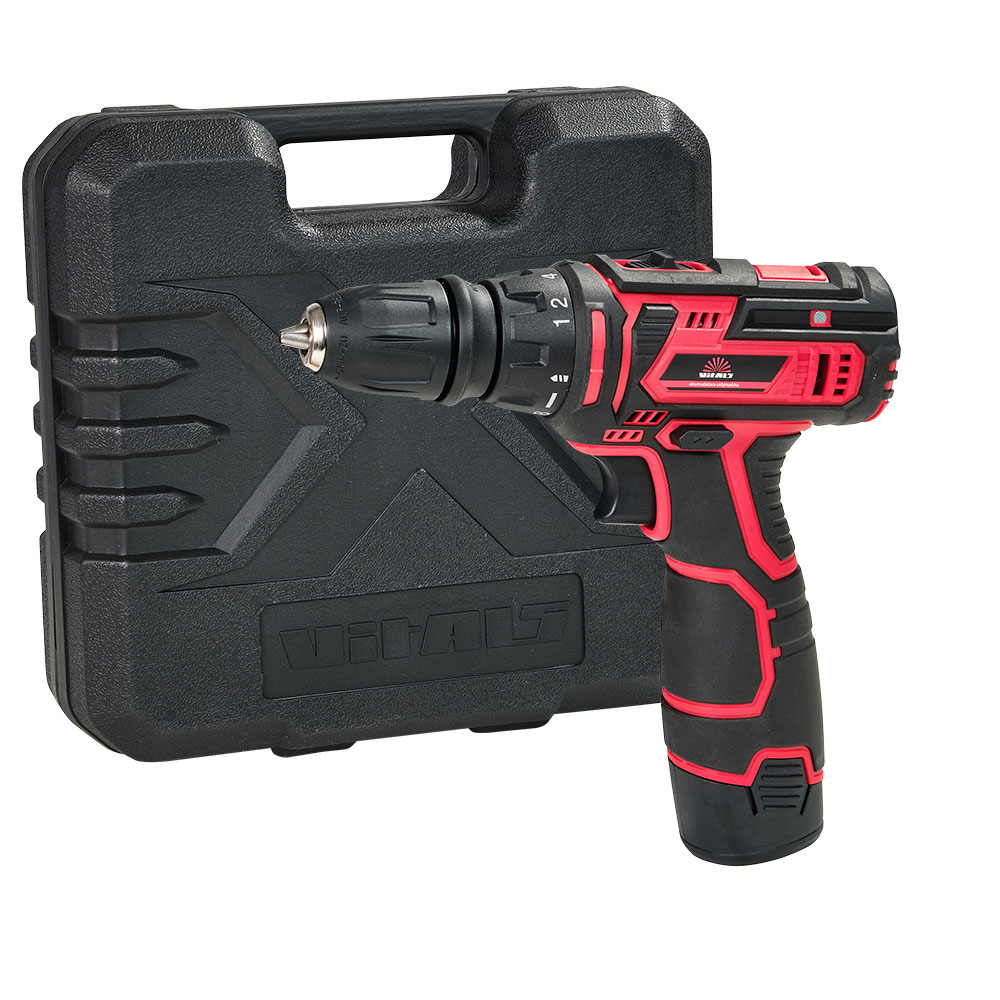 Дриль-шурупокрут акумуляторний Vitals AU 12/2KP QC оснащений довговічними літій-іонними акумуляторами без ефекту пам’яті.