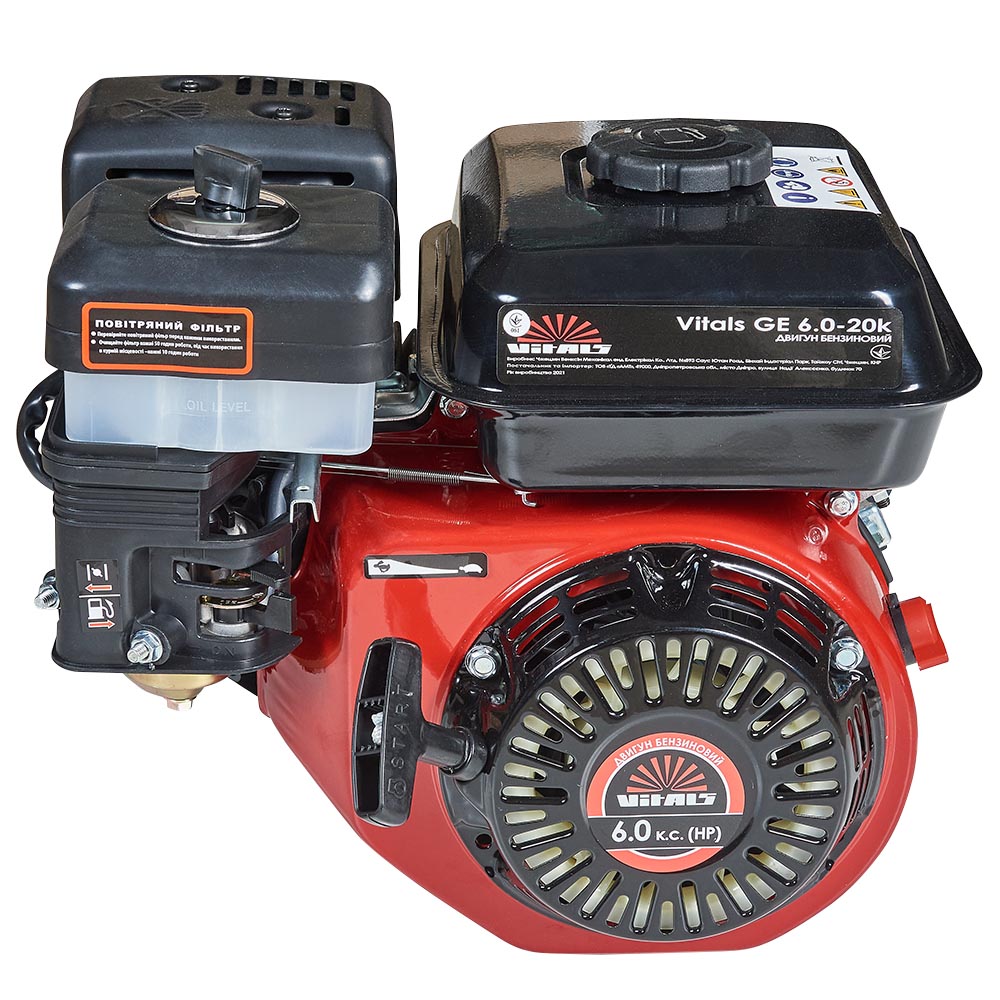 Двигун внутрішнього згоряння Vitals GE 6.0-20k - універсальний бензиновий одноциліндровий чотиритактний двигун загального призначення з повітряним охолодженням.