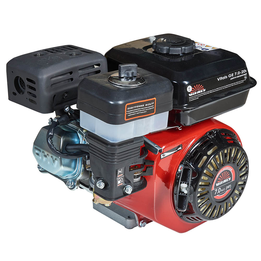 Двигун внутрішнього згоряння Vitals GE 7.0-20s - універсальний бензиновий одноциліндровий чотиритактний двигун загального призначення з повітряним охолодженням.