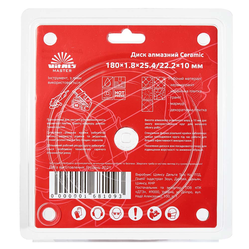 Диск алмазний Vitals Master Ceramic 180×1,8×25,4/22,2×10 мм