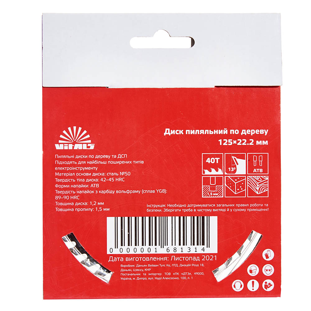Опис пиляльного диску Vitals по дереву 125x22.2, ATB 40