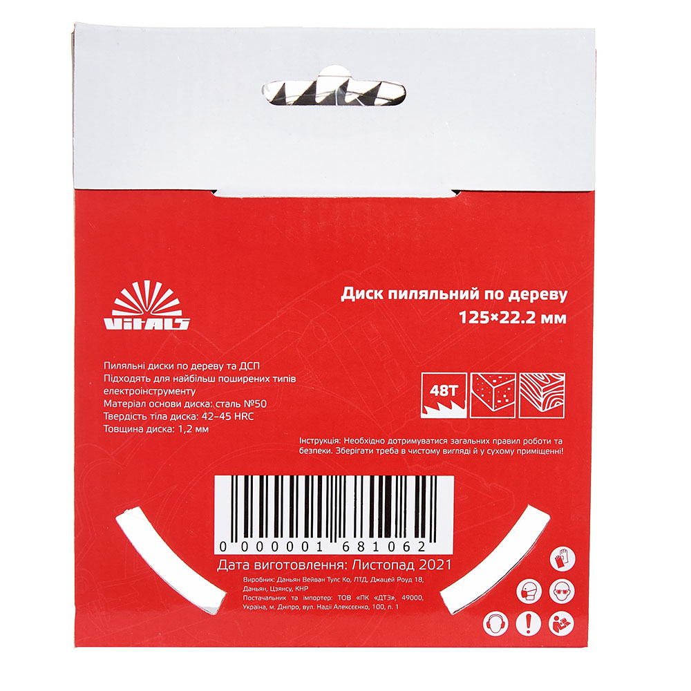 Опис пиляльного диску Vitals по дереву 125x22.2, T 48
