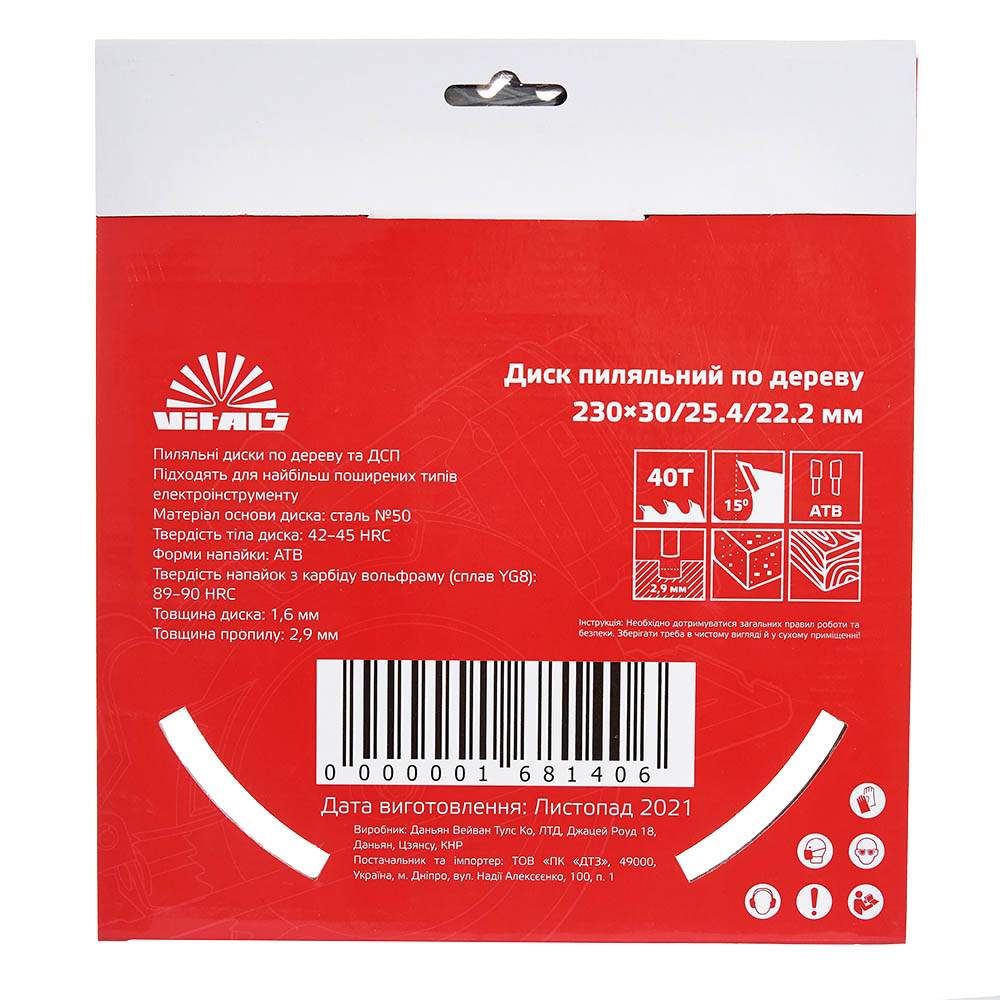 Диск пиляльний Vitals по дереву 230x30/25.4/22.2, ATB 40