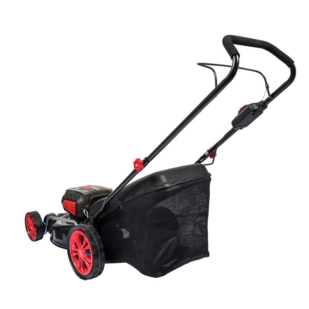 Газонокосарка може проводити збір скошеної трави в короб, бічний викид трави або мульчування. Висота косіння регулюється центральним важелем, який дозволяє встановити 6 різних рівнів від 25 до 75 мм. Ширина косіння 410 мм.