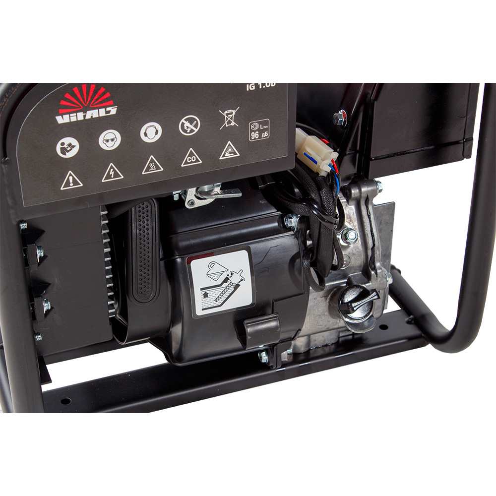 Vitals IG 1.0b оснащений надійним 4-тактним одноциліндровим бензиновим двигуном потужністю 2 к.с. та робочим об'ємом 60 см³. Завдяки продуманій системі охолодження та ефективному глушнику рівень шуму значно знижується, а покращене відведення тепла запобігає перегріву навіть при тривалій роботі. Запуск генератора здійснюється за допомогою ручного стартера, що забезпечує простоту у використанні.