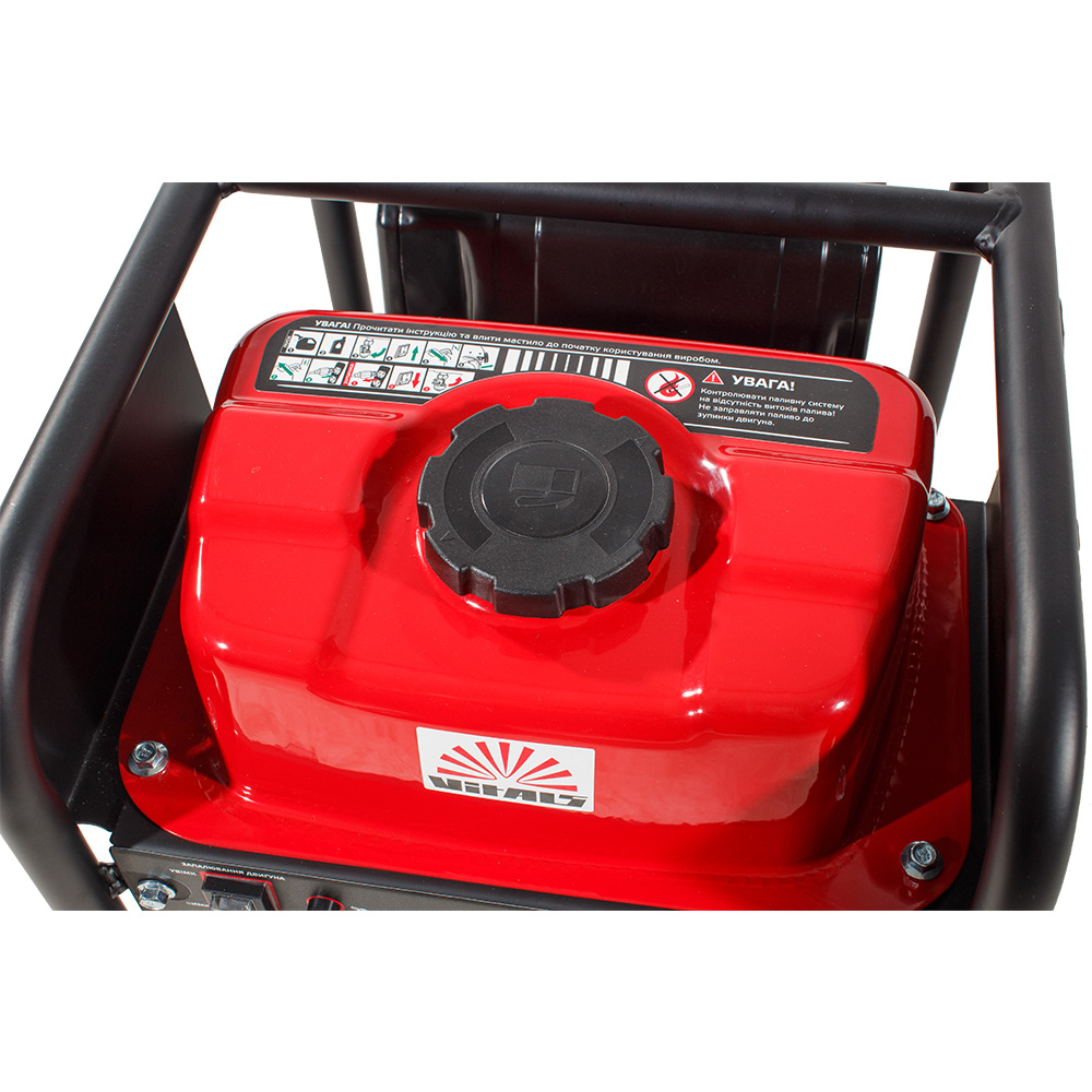 Об’єм паливного бака становить 2,5 літра, що дозволяє генератору працювати досить тривалий час без дозаправки. Номінальна потужність пристрою – 1,0 кВт, а максимальна – 1,1 кВт, чого достатньо для підключення основних побутових приладів або електроінструментів. Генератор має стандартну розетку 230 В/16 А для зручного підключення споживачів.