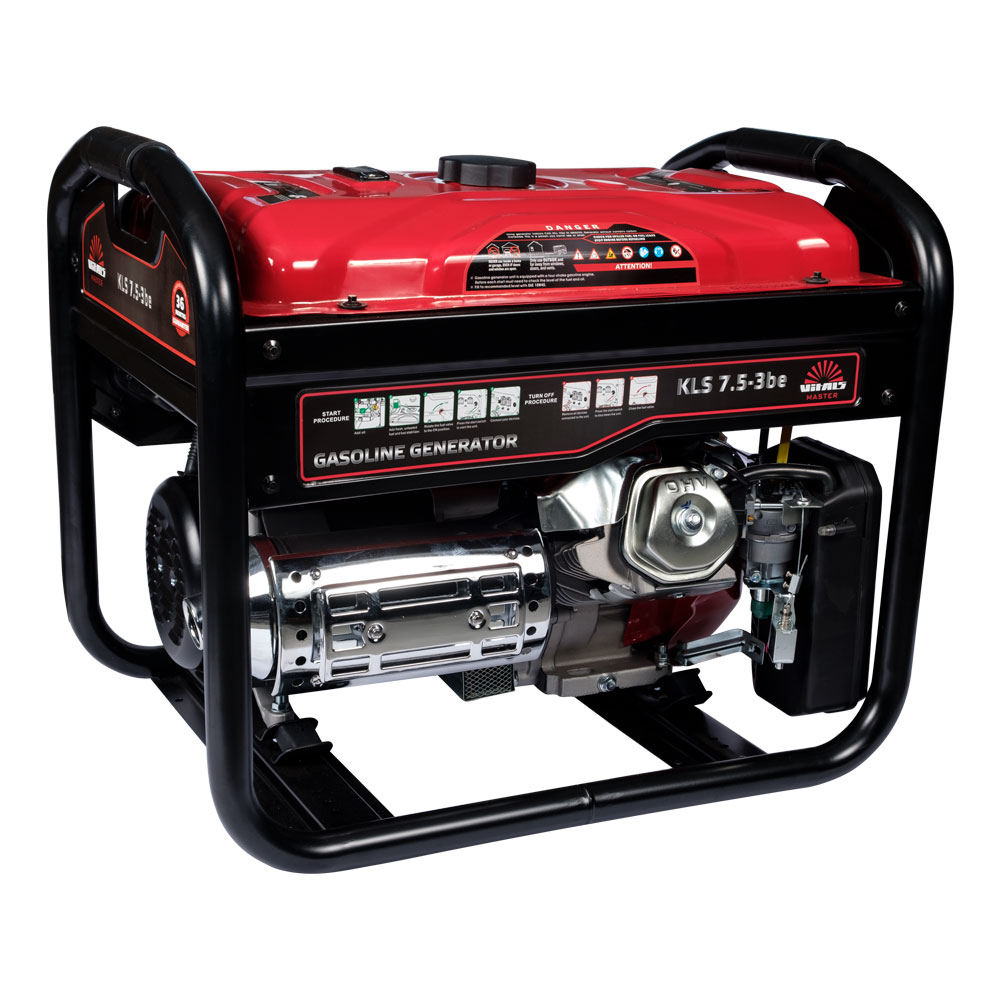 Бензиновий генератор Vitals Master KLS 7.5-3be — це компактний переносний електричний агрегат, призначений для резервного або аварійного живлення побутових споживачів. Виробляє змінний струм частотою 50 Гц: однофазний — напругою 230 В, або трифазний — напругою 400 В. Номінальну електричну потужність 9,4 кВА (7,5 кВт), максимальну 10,0 кВА (8,0 кВт) генератор видає лише за трифазного підключення навантаження.