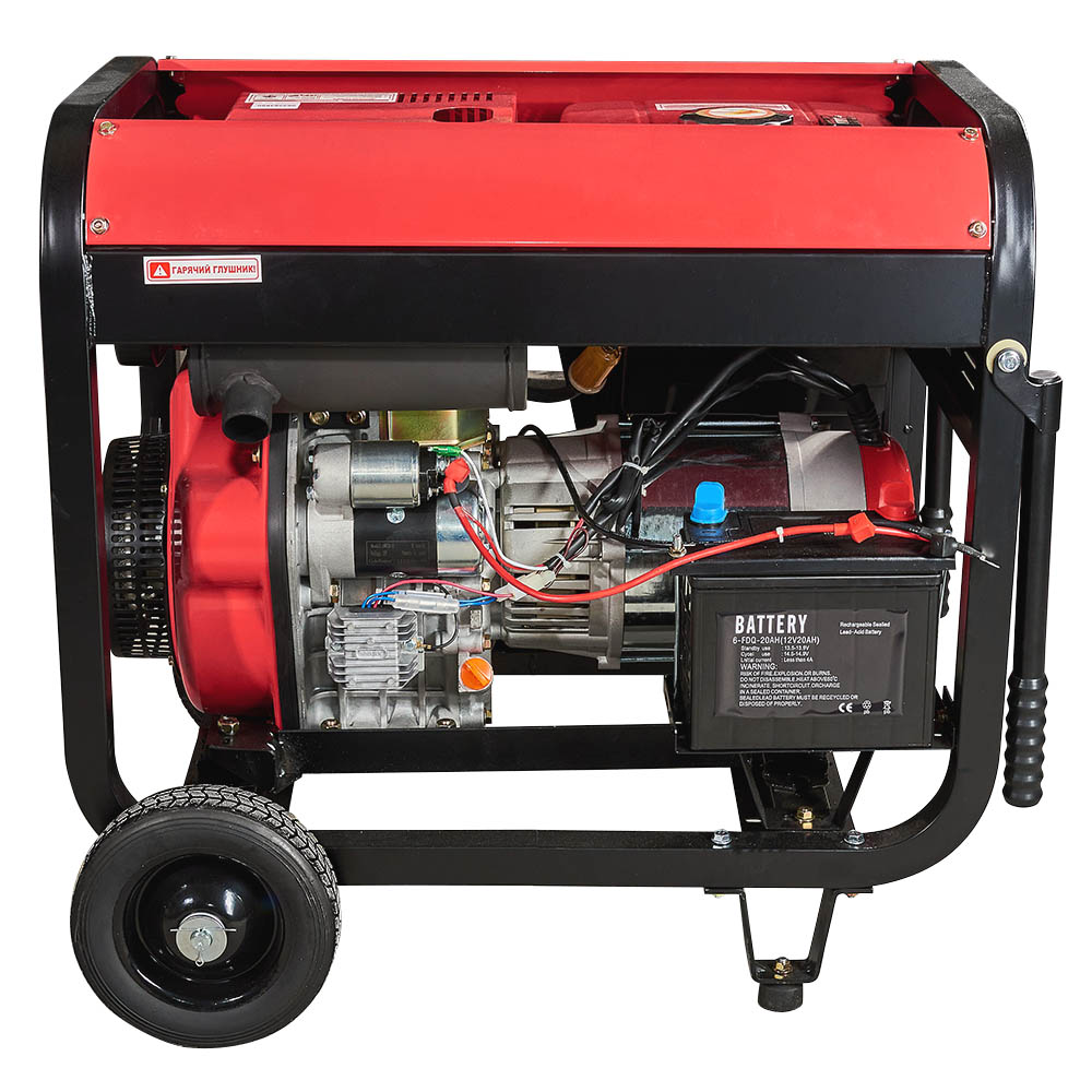 Генератор оснащений колесами та ручками. Це дозволяє оператору без сторонньої допомоги переміщати генератор до місця робіт.