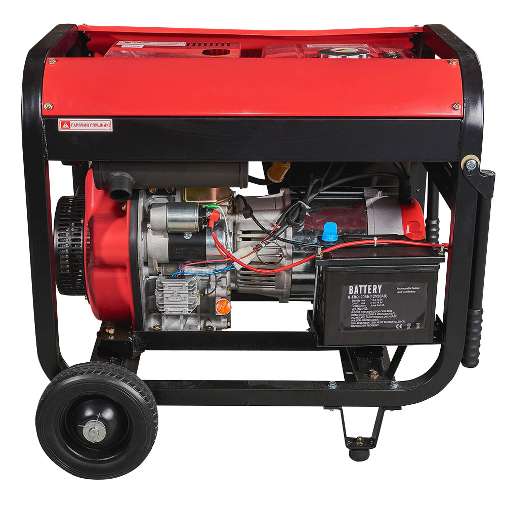 Генератор оснащений колесами та ручками. Це дозволяє оператору без сторонньої допомоги переміщати генератор до місця робіт.