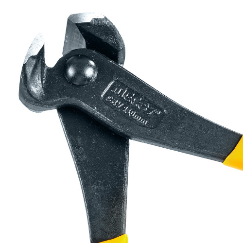 Робочі губки виготовлені з високоякісної хром-ванадієвої сталі (CrV), що забезпечує підвищену міцність, зносостійкість та тривалий термін служби навіть за інтенсивної експлуатації. Торцеве розташування ріжучих кромок дозволяє працювати максимально близько до поверхні, що особливо зручно під час демонтажу цвяхів, скоб або різання дроту врівень із матеріалом.