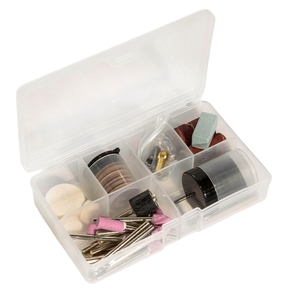 Особливою перевагою гравера Vitals Eu 1335KP є розширена комплектація з 104 насадок, яка дозволяє приступити до роботи одразу після придбання без додаткових витрат.