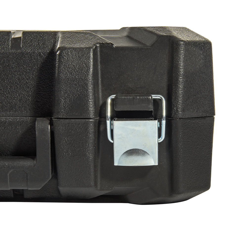 Зручна ергономічна рукоять кейса забезпечує комфортне транспортування, навіть якщо доводиться переміщати його на значні відстані. Конструкція кейса продумана так, щоб мінімізувати навантаження на руки, що робить його незамінним помічником у роботі для майстрів будь-якого рівня. Крім того, міцність і довговічність матеріалів гарантують, що кейс прослужить довгі роки, зберігаючи свої властивості навіть при активній експлуатації.