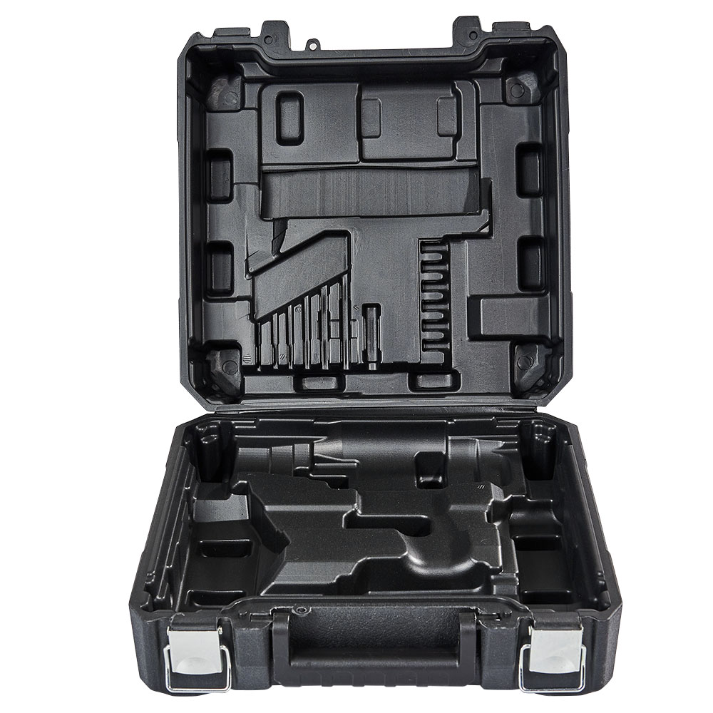 1. Безпечне та організоване зберігання: Кейс має спеціально розроблені відсіки та фіксатори, які дозволяють зручно та надійно розмістити гвинтоверт та його компоненти, запобігаючи їх переміщенню під час перевезення.