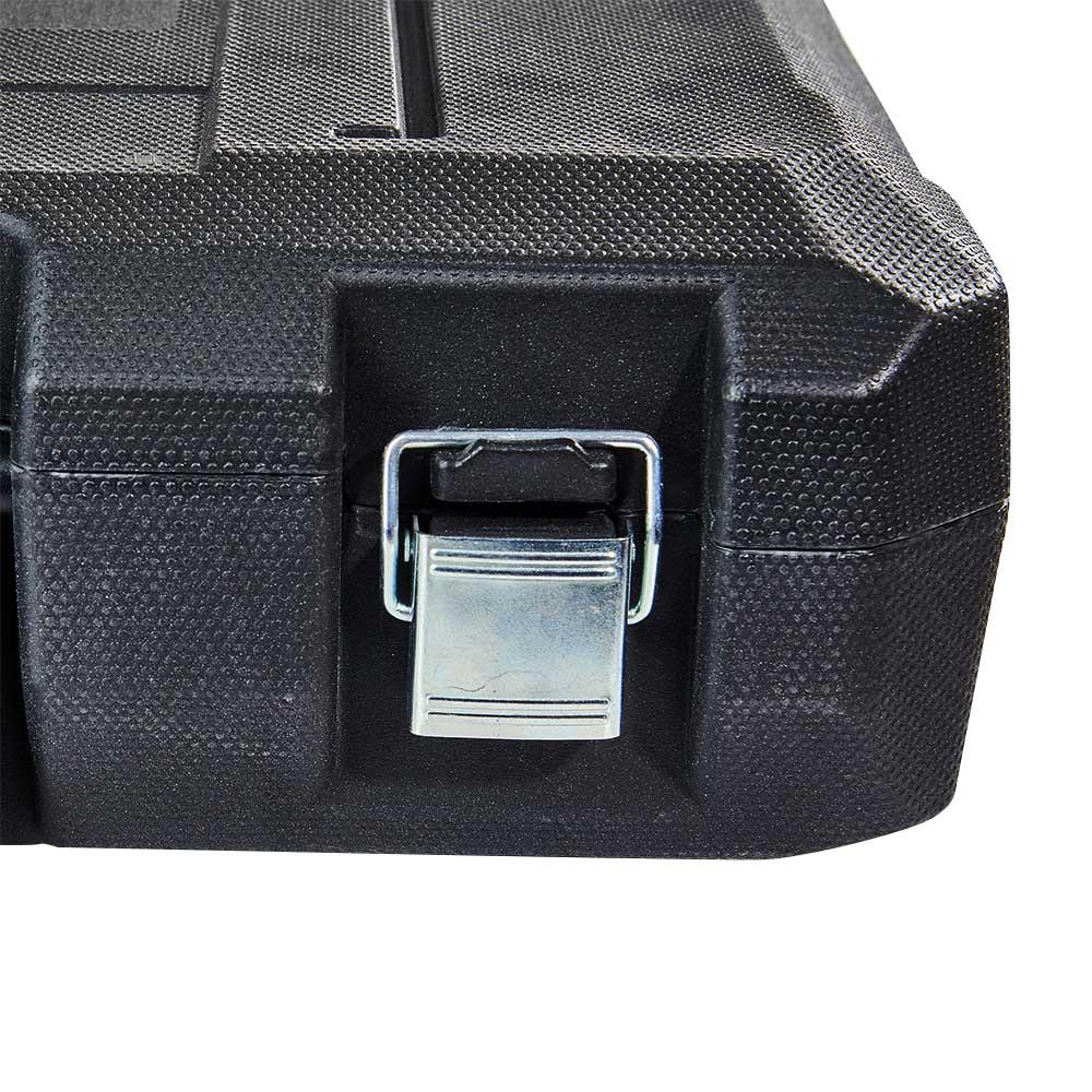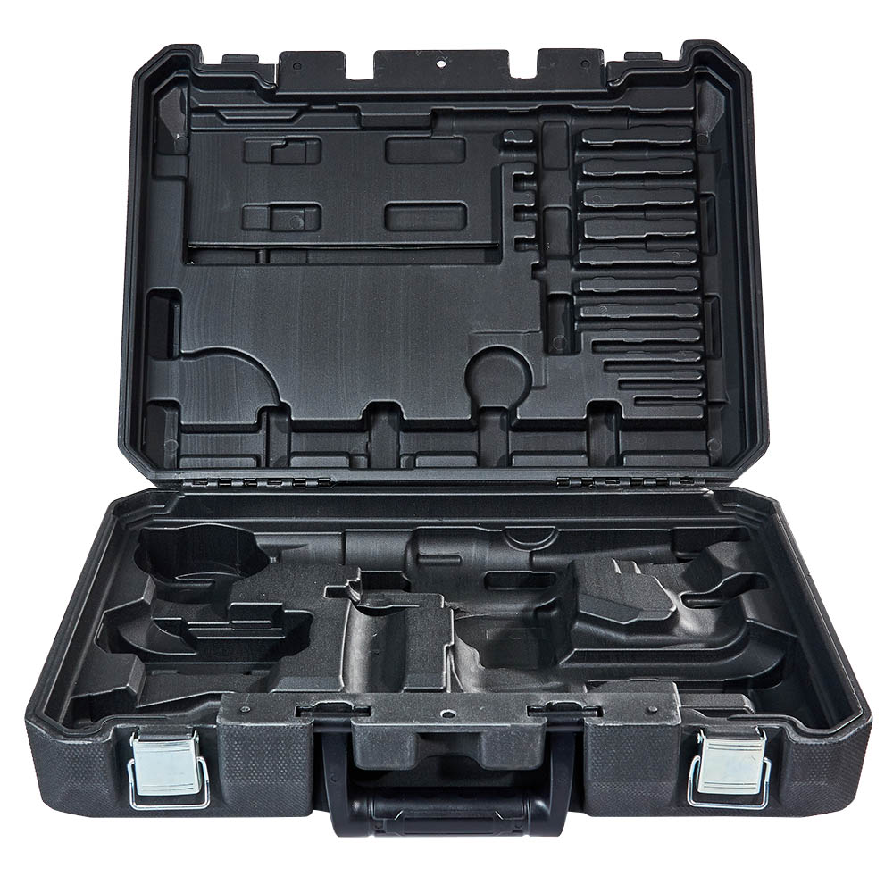 1. Безпечне та організоване зберігання: Кейс має спеціально розроблені відсіки та фіксатори, які дозволяють зручно та надійно розмістити перфоратор та його компоненти, запобігаючи їх переміщенню під час перевезення.