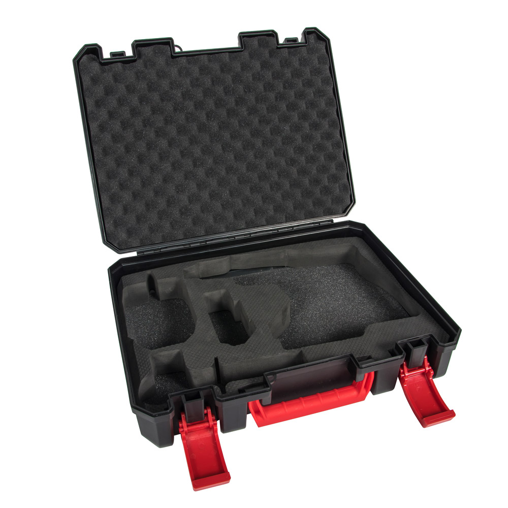 2. **Висока ударостійкість**: Кейс виготовлений з надміцного (ABC) пластика з додатковими ребрами жорсткості, що забезпечує високу стійкість до ударів і зберігає ваш перфоратор в цілісному стані.