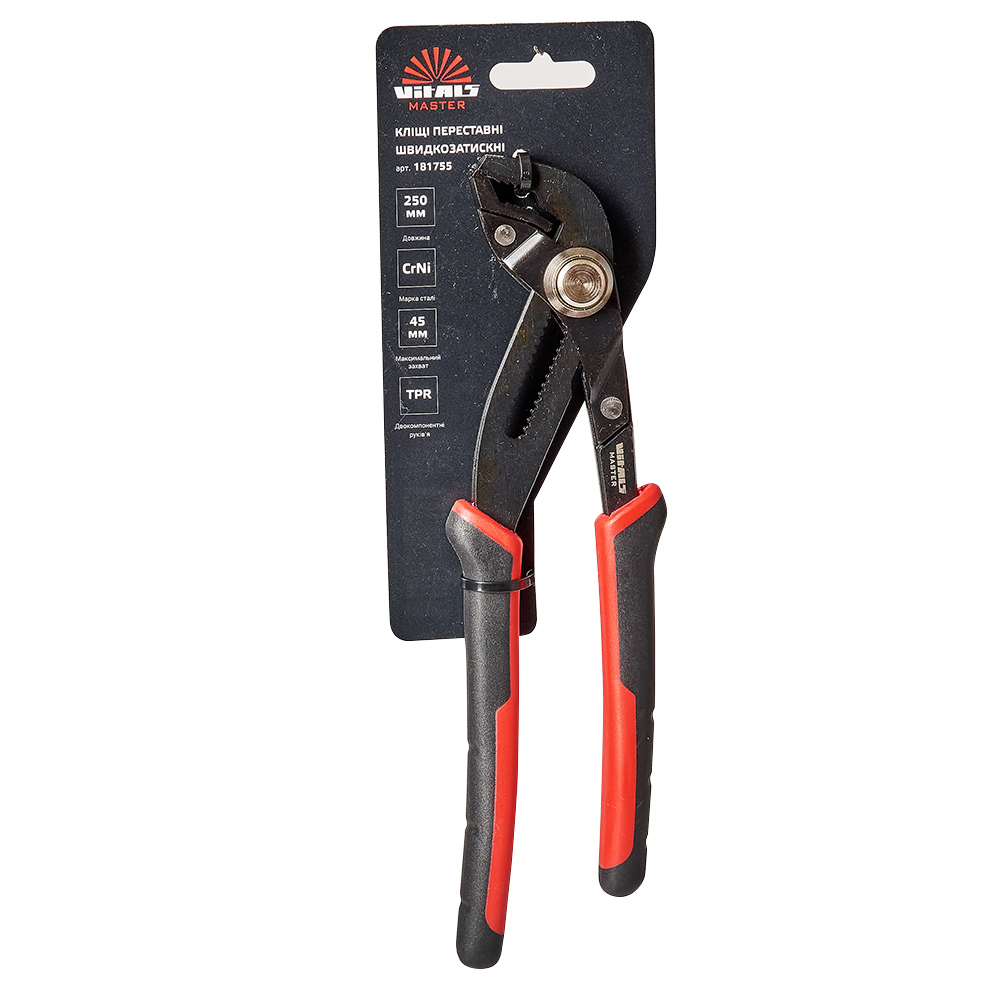 Кліщі переставні швидкозатискні 250 мм захват 45 мм Vitals Master