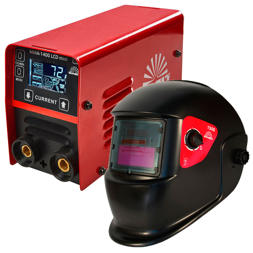 Комплект зварювальний апарат Vitals MMA-1400 LCD mini + Маска зварювальника Vitals 1500 (1+1)