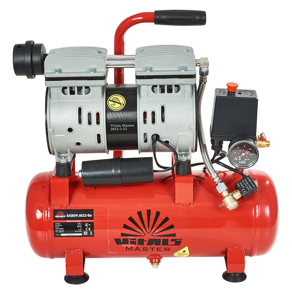 Компресор Vitals Master SKB09.t632-8a — безмастильний двоциліндровий компресор напівпрофесійного класу, циліндри якого приводяться в дію електродвигуном. Для змащення поршнів не використовується олива, через це Vitals Master SKB18.t632-8a подає інструментам чисте повітря без домішок та має всі переваги притаманні безмастильним компресорам.