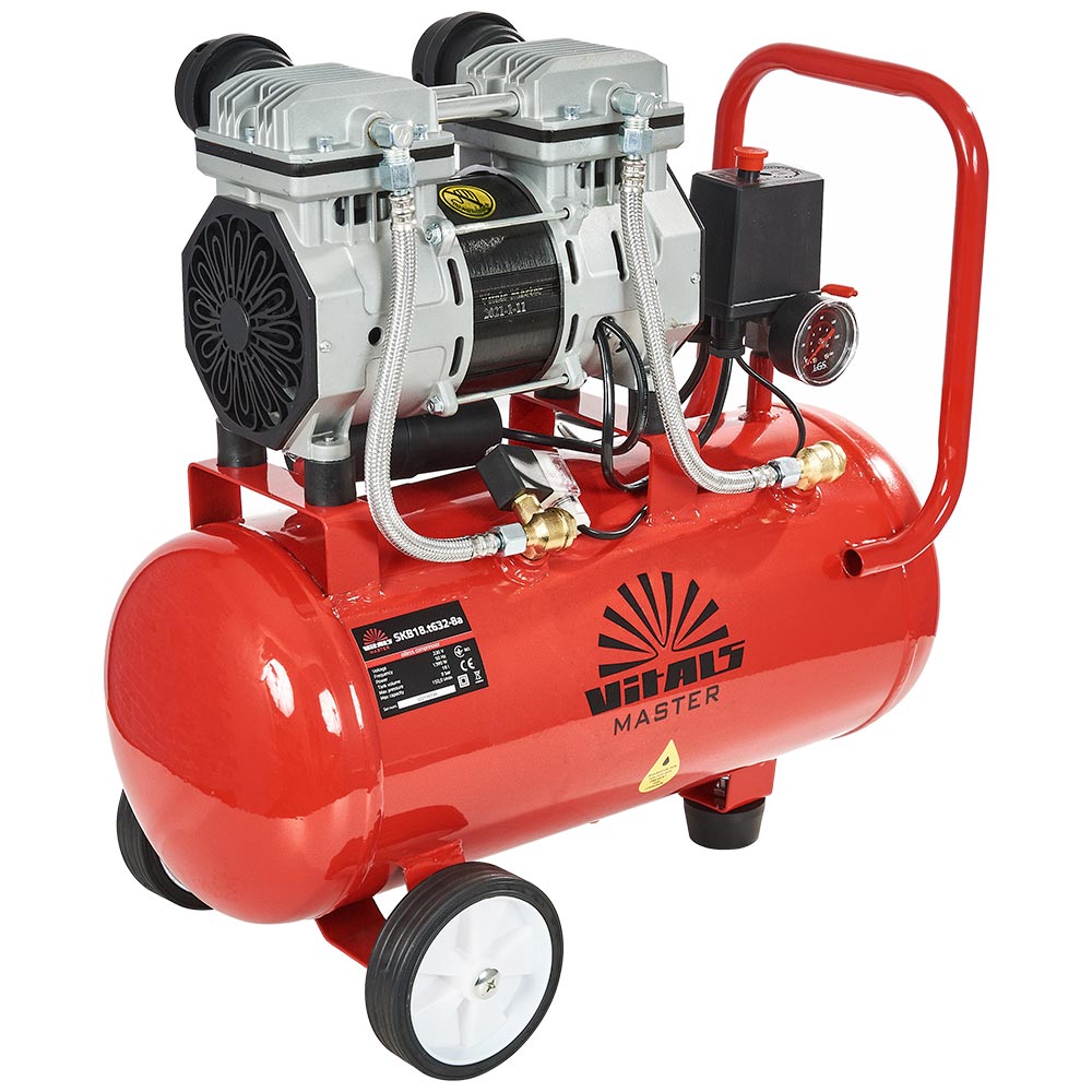 Vitals Master SKB18.t632-8a — безмастильний двоциліндровий компресор напівпрофесійного класу, циліндри якого приводяться в дію електродвигуном. Для змащення поршнів не використовується олива, через це Vitals Master SKB18.t632-8a подає інструментам чисте повітря без домішок та має всі переваги притаманні безмастильним компресорам.