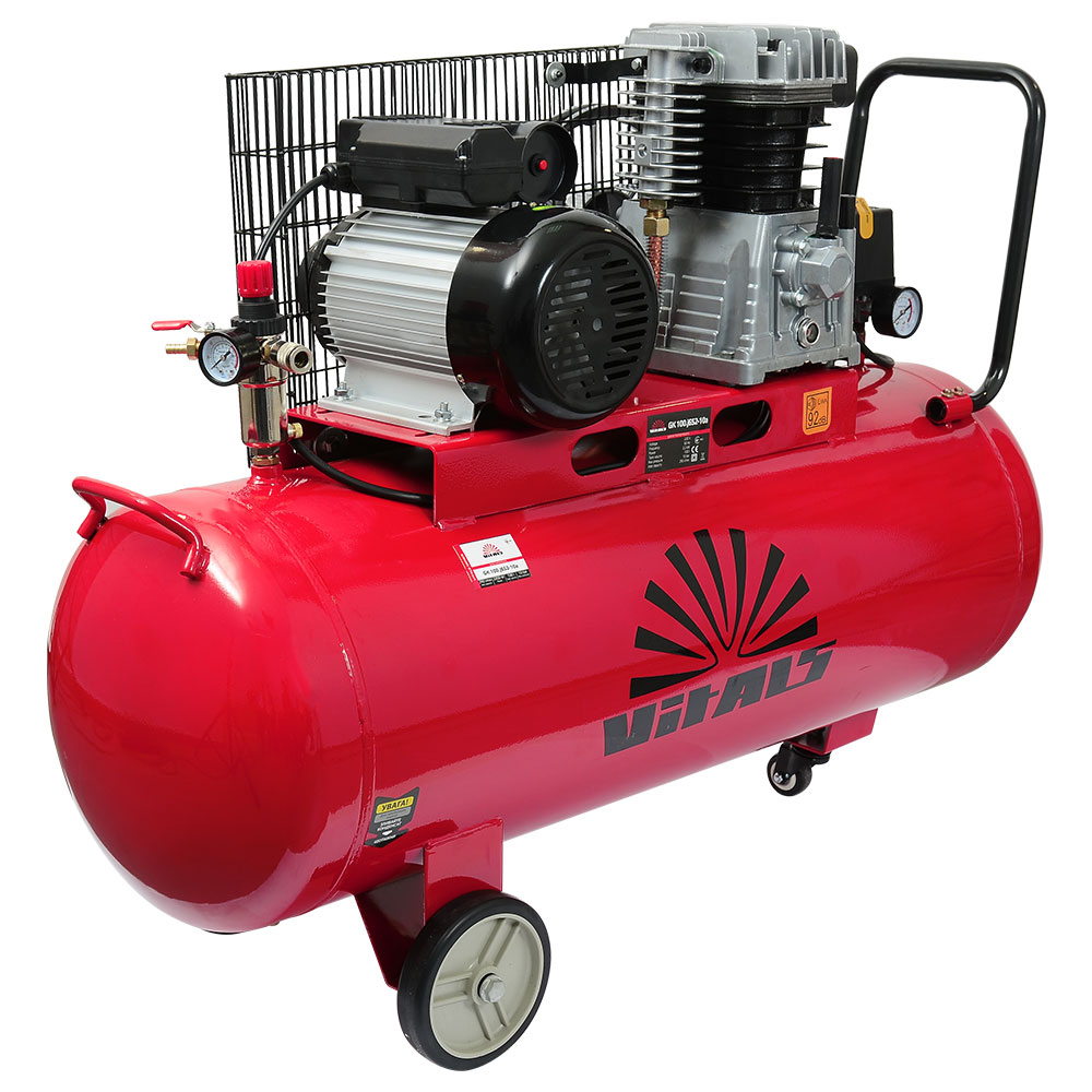 Vitals GK100.j652-10A — високоякісний повітряний компресор. Належить до масляних агрегатів з пасовим приводом. Для змащення циліндрів застосовується компресорна олива, а обертання з двигуна на шатунний механізм передається за допомогою шківа (паса). У разі передачі пасовим приводом кількість обертів на шатунний механізм знижується практично вдвічі. Це призводить до зменшення температури, як поршневої групи, так і стисненого повітря на виході. Низька частота обертання колінвалу економить ресурс циліндрів і дає змогу використовувати компресор в більш інтенсивному режимі.