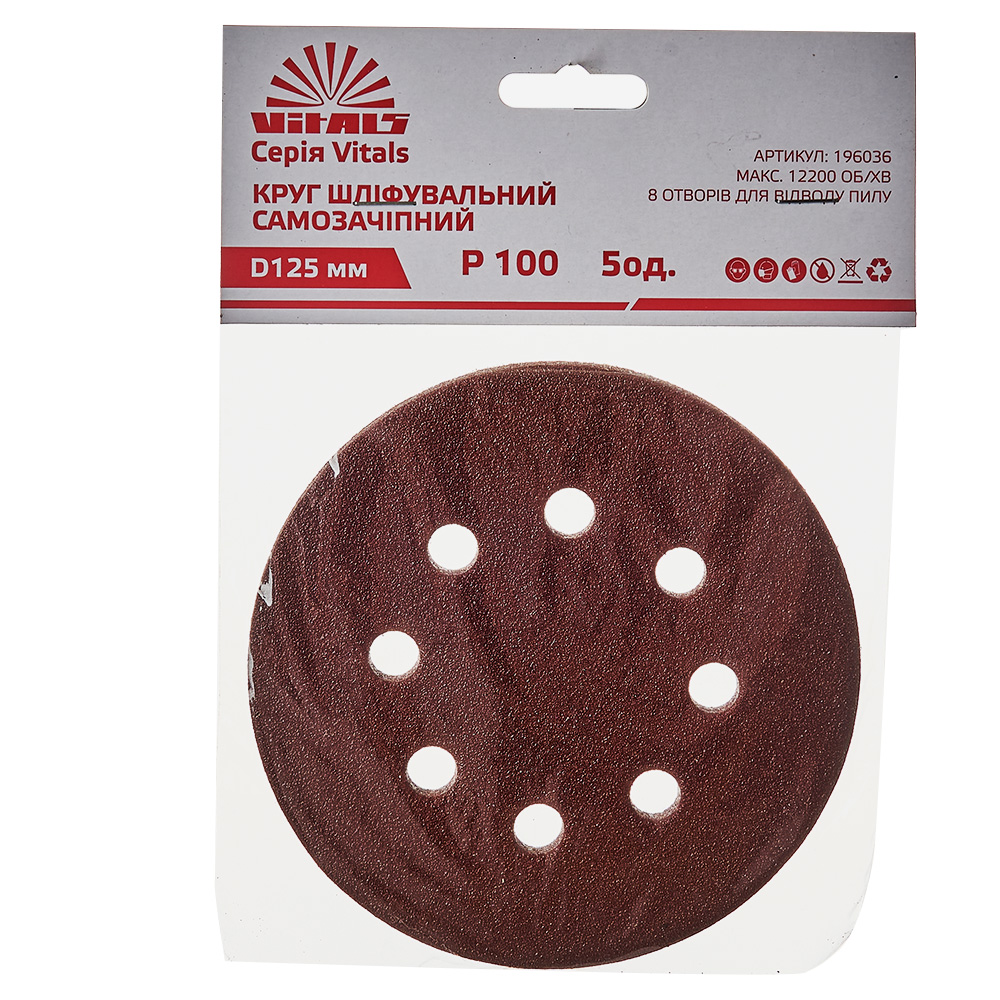 Круг шліфувальний самозачіпний Vitals 125 мм, 8 отв., з. – 100, 5 од.