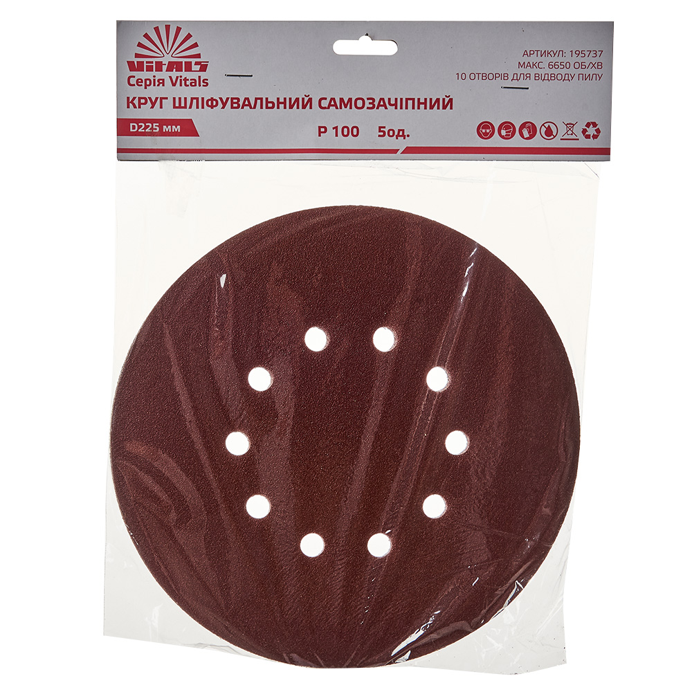 Круг шліфувальний самозачіпний Vitals 225 мм, 10 отв., з. – 100, 5 од.