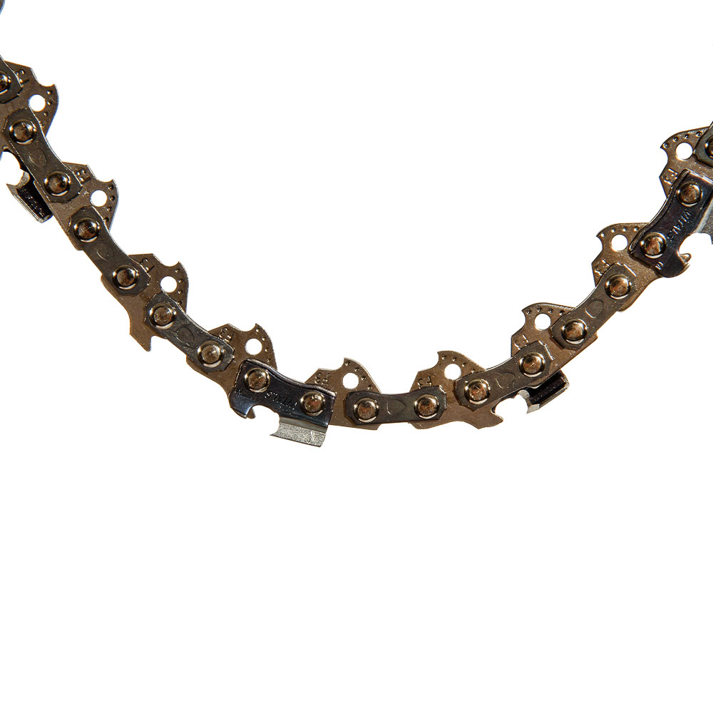 Ланцюг виготовлений з легованої закаленої сталі, що забезпечує високу стійкість до зносу, перегріву та деформацій навіть при інтенсивній роботі. Ріжучі кромки надовго зберігають гостроту, що зменшує потребу в частій заточці та забезпечує рівний і чистий різ деревини будь-якої породи та вологості. Це робить його відмінним рішенням для професіоналів і аматорів, які цінують ефективність і тривалу роботу без втрати якості різу.