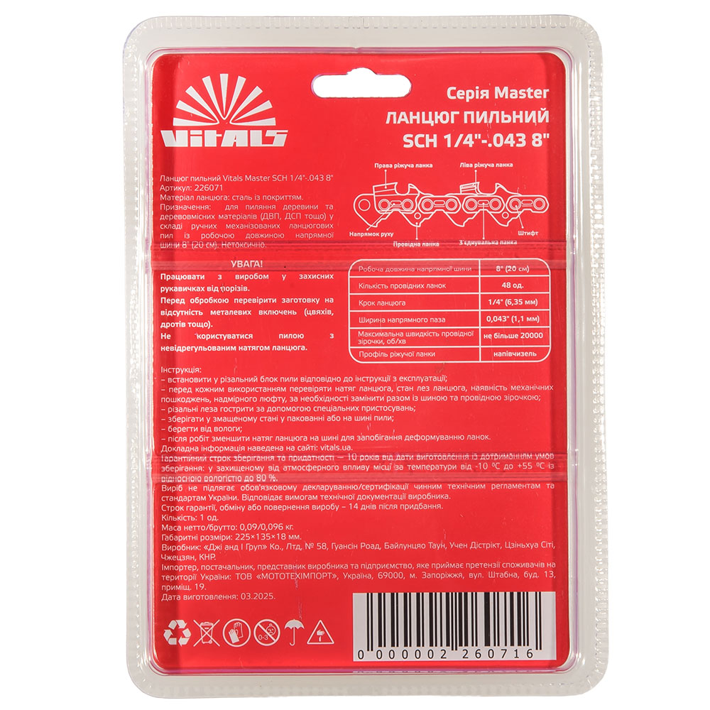 Пильний ланцюг Vitals Master SCH 1/4"-.043 8" – надійність, довговічність та точність у роботі
