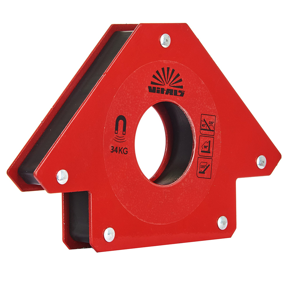 Магнітний тримач для зварювання призначений для точної фіксації деталей під кутами 45°, 90°, 135° у зварювальних роботах, паянні та інших операціях під час виготовлення металоконструкцій зі сталі.