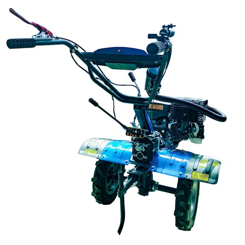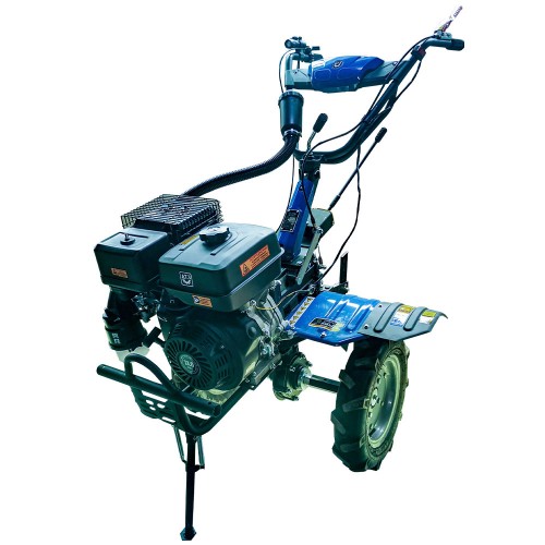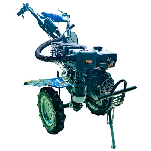 Модель обладнана міцною коробкою передач із трьома швидкостями вперед та однією назад, що гарантує плавне перемикання та можливість роботи в різних умовах. Трансмісія з прямим шестеренчастим приводом забезпечує високу надійність і довговічність роботи механізмів. Встановлені великі пневматичні колеса 4.00-10 типу «ялинка» забезпечують чудову прохідність і зчеплення з ґрунтом, що дозволяє використовувати мотоблок як для обробки землі, так і для транспортування вантажів на причепі.