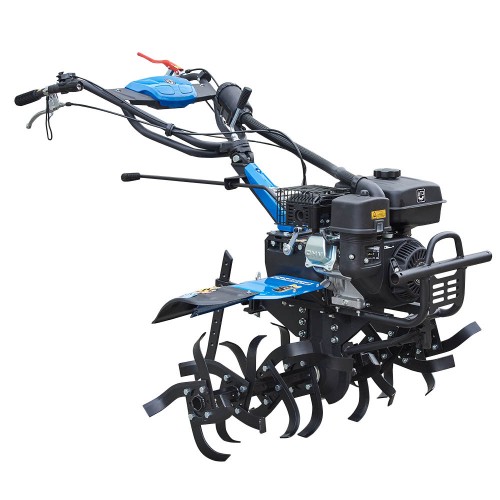 2. **Колеса і фреза:** Комплектується великими колесами 4.00-10 і 8-секційною ґрунтофрезою з максимальним захопленням 1140 мм, що забезпечує високу прохідність та продуктивність при обробці ґрунту.