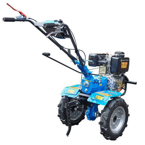 - Обидва варіанти оснащені потужним дизельним двигуном потужністю 10 к. с., що забезпечує ефективну роботу навіть з важкими інструментами та обладнанням.