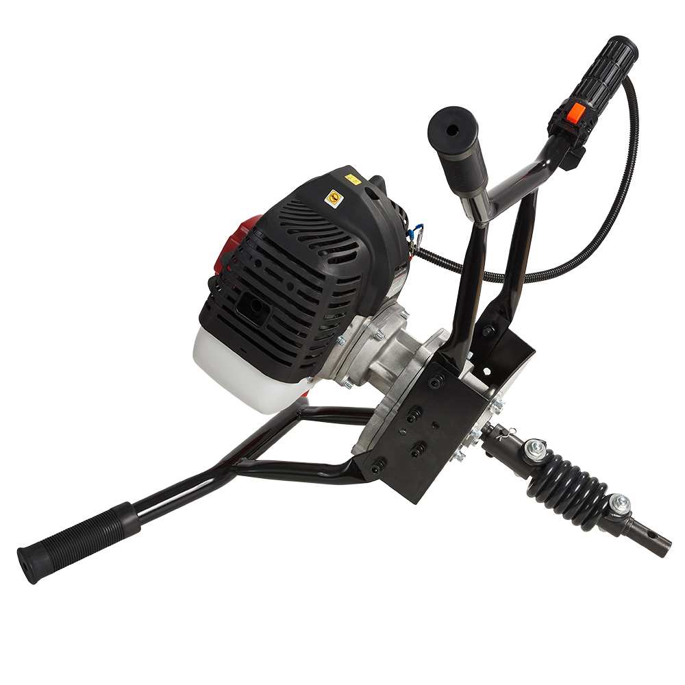 Оснащений бензиновим одноциліндровим двотактним двигуном, ручним стартером, редуктором для зменшення частоти обертів шнека, амортизатором для компенсації зайвих навантажень, а також автоматичною відцентровою муфтою зчеплення.