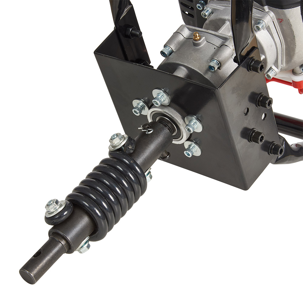 Редуктор виготовлений із міцного металу, має велику надійність та довговічність. Передавальне число 25:1 у відповідну кількість разів зменшує частоту обертання бура порівняно з обертами двигуна та збільшує крутний момент. Це дає змогу, маючи двигун з порівняно помірними потужністю й вагою, застосовувати досить продуктивні бурові шнеки. Під час зіткнення шнека з занадто твердими перешкодами й ударного зростання навантаження автоматична відцентрова муфта зчеплення припиняє передачу та оберігає двигун від перевантаження. Також для захисту двигуна під час ударів шнека об перешкоди застосований пружинний амортизатор.