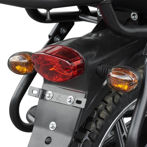 • Захист: Мотоцикл має захисні накладки на глушителі та випускній трубі для безпеки, а також дуги безпеки для додаткового захисту водія.