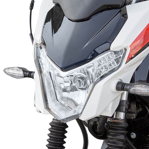 Передня оптика: Фара вбудована в обтічник, з галогеновою лампою розжарювання. Габаритні вогні і покажчики поворотів зі світлодіодами. Додаткова стрічка зі світлодіодами