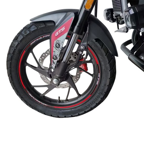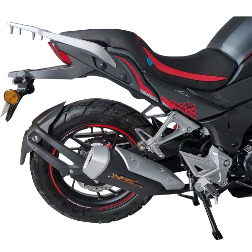 - Шини: Дорожні шини з високим профілем "асфальт/грунт" (передня 110/80-17, задня 140/70-17) для стабільності на різних поверхнях.