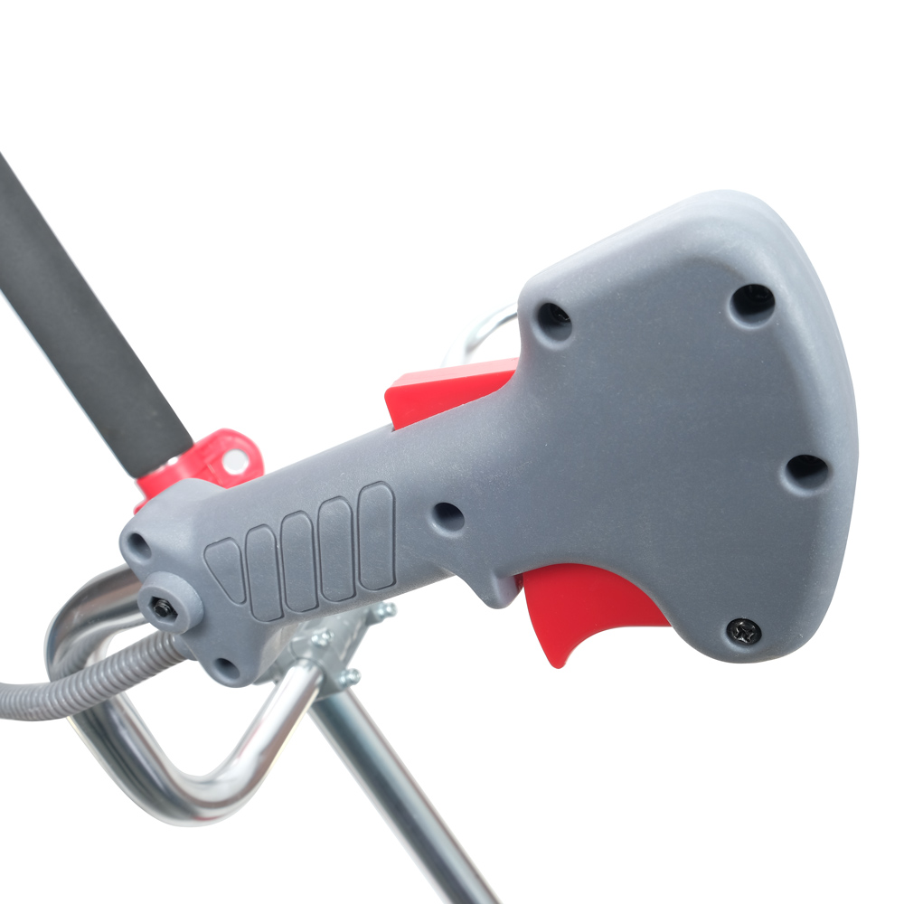 Мотокоса укомплектована зручними ергономічними руків’ями. Одне з руків’їв подовжене — задля більшого замаху. Обидва покриті м’яким еластичним матеріалом. Їх взаємне розташування регулюється. Вони фіксуються на штанзі зручним і надійним кріпленням.