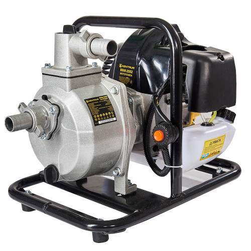 **Особливості конструкції:** Кентавр ВБМ-2552 оснащена відцентровим самовсмоктувальним насосом у корпусі з алюмінію, що забезпечує тривалий термін служби та стійкість до корозії. В комплекті йде набір кріплень для з’єднання рукавів із всмоктувальним та нагнітальним патрубками діаметром 25 мм. Завдяки зручній конструкції та невеликій вазі (8,5 кг), мотопомпа легко транспортується, а компактні розміри дозволяють зручно зберігати її в обмеженому просторі.