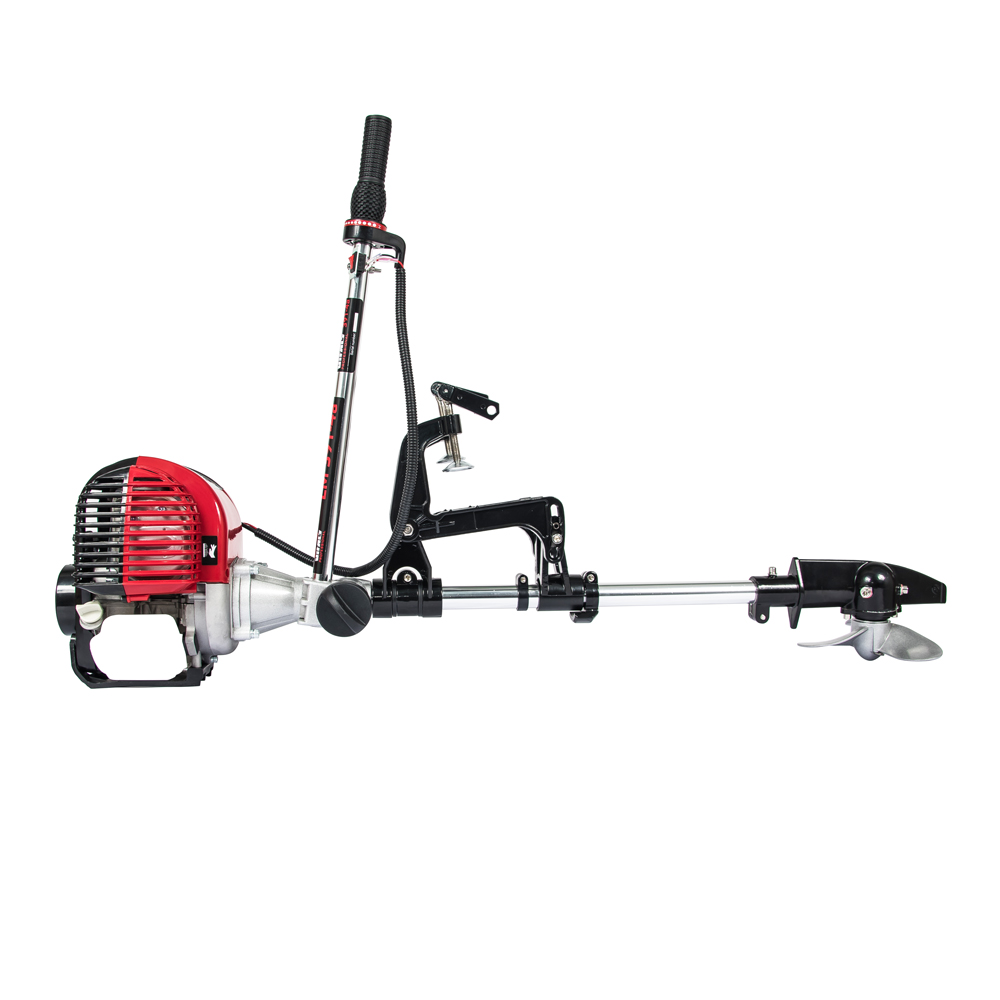 Чотиритактний двигун виготовлений з високоякісної комплектації. Завдяки високим обертам при порівняно невеликому робочому об’ємі 38 см3 має чималу потужність — 1,36 к.с. Висока частота обертання також сприяє зменшенню вібраційного навантаження на конструкцію човна.