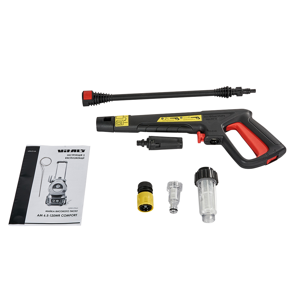 Мийка високого тиску Vitals 6.5-120wr Comfort — високоякісний компактний побутовий інструмент, призначений для ефективного очищення поверхонь від забруднень струменем води під високим тиском.